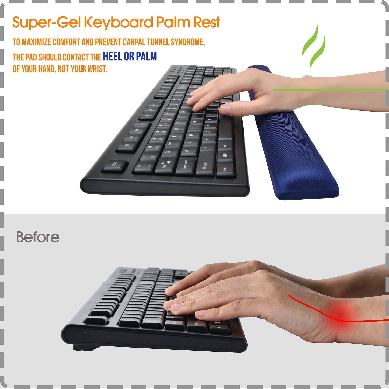 - Keeps wrists comfortably positioned when typing or gaming, preventing wrist pain