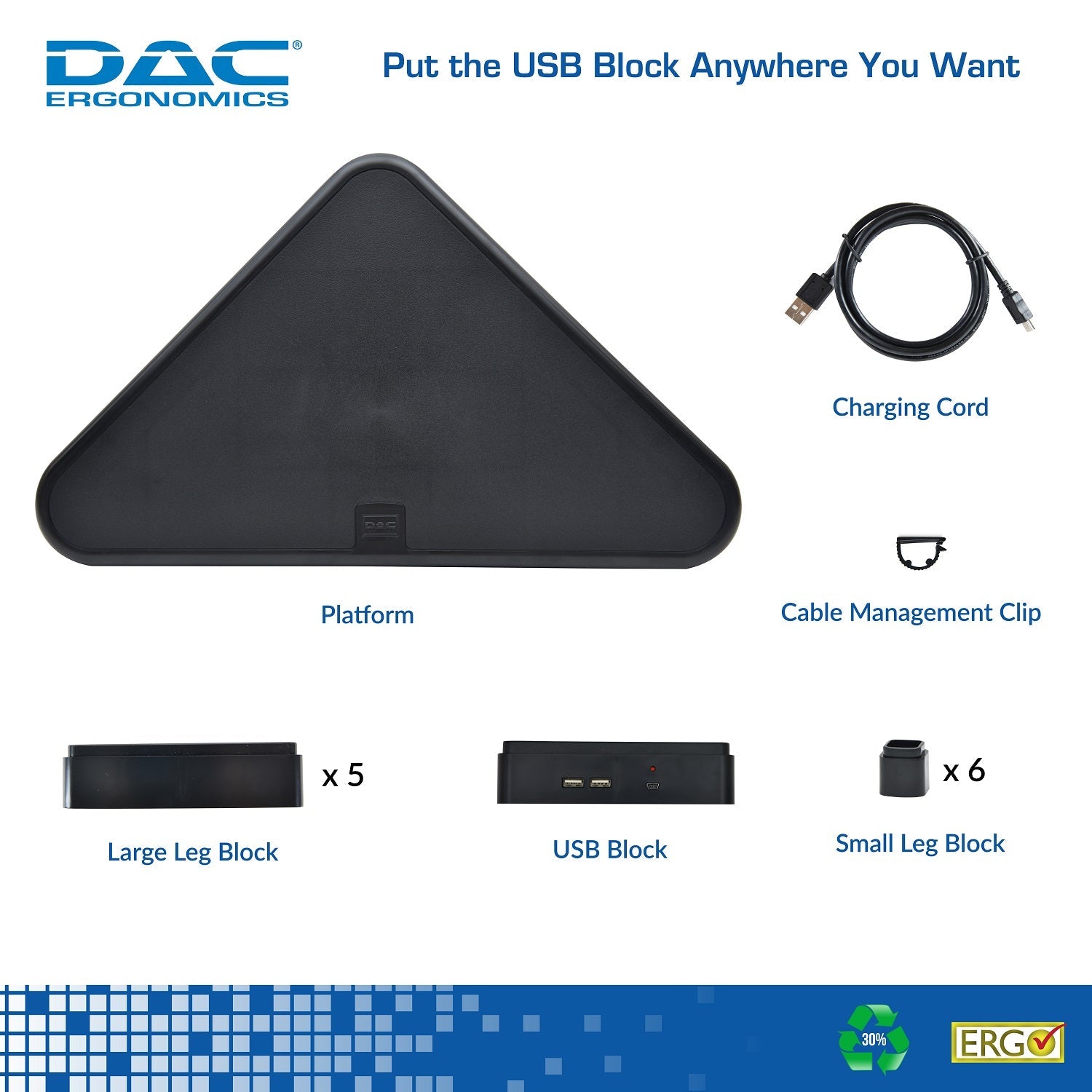 - Made from 30% Recycled Content