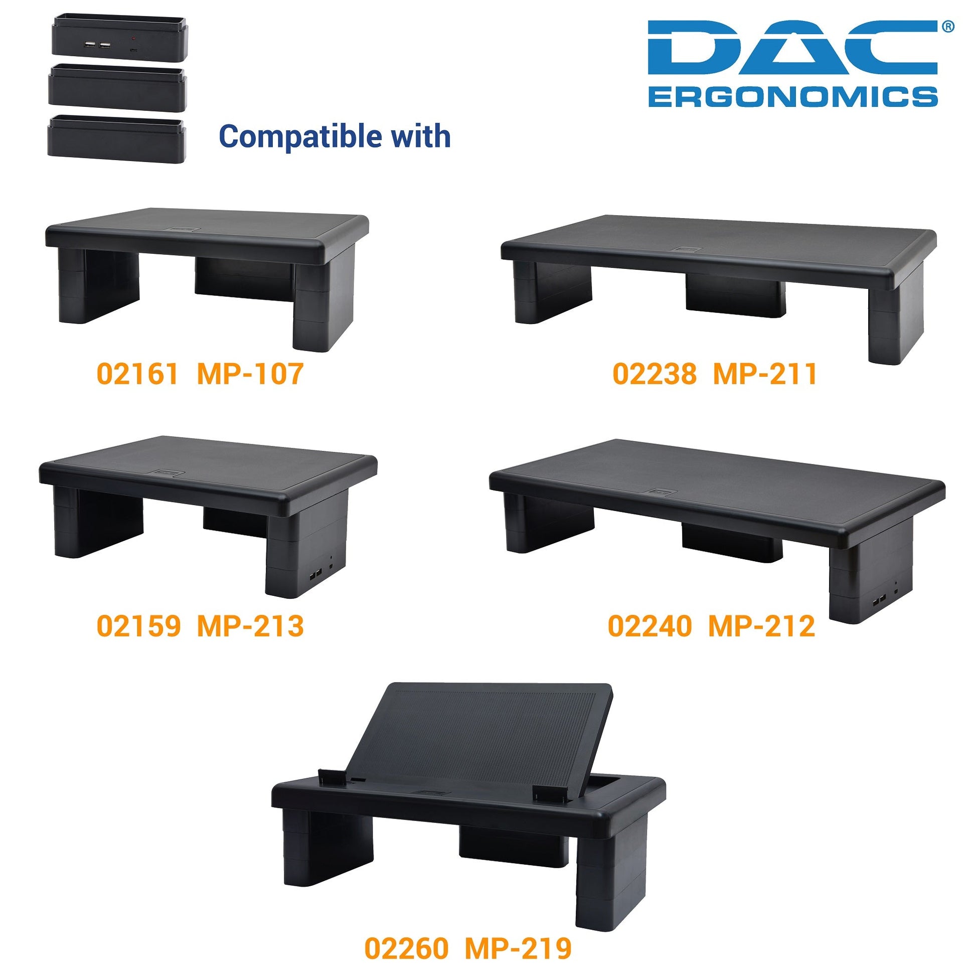 DAC® Stax™ MP-232 Monitor Riser Block Kit with 2 USB Charging Ports