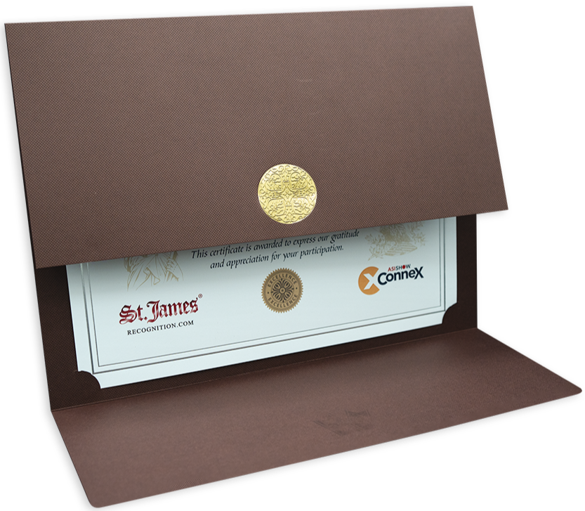 - For a complete award presentation, this certificate holder coordinates with St. James foil certificates and seals
