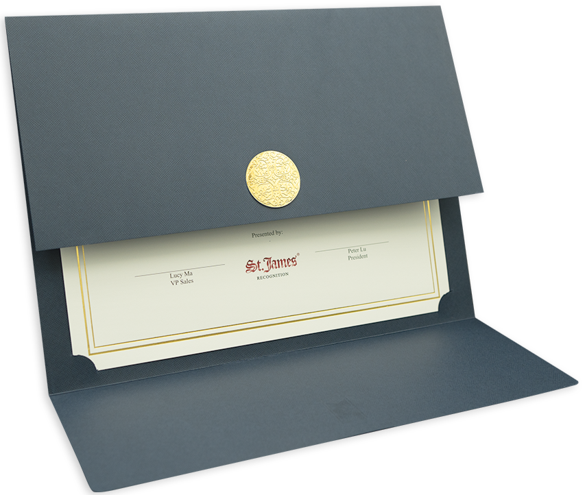 - For a complete award presentation, this certificate holder coordinates with St. James foil certificates and seals