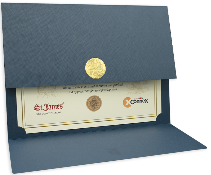 - For a complete award presentation, this certificate holder coordinates with St. James foil certificates and seals