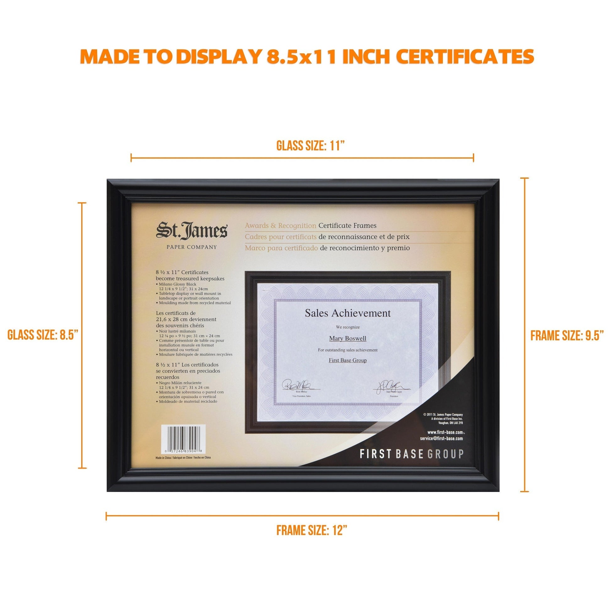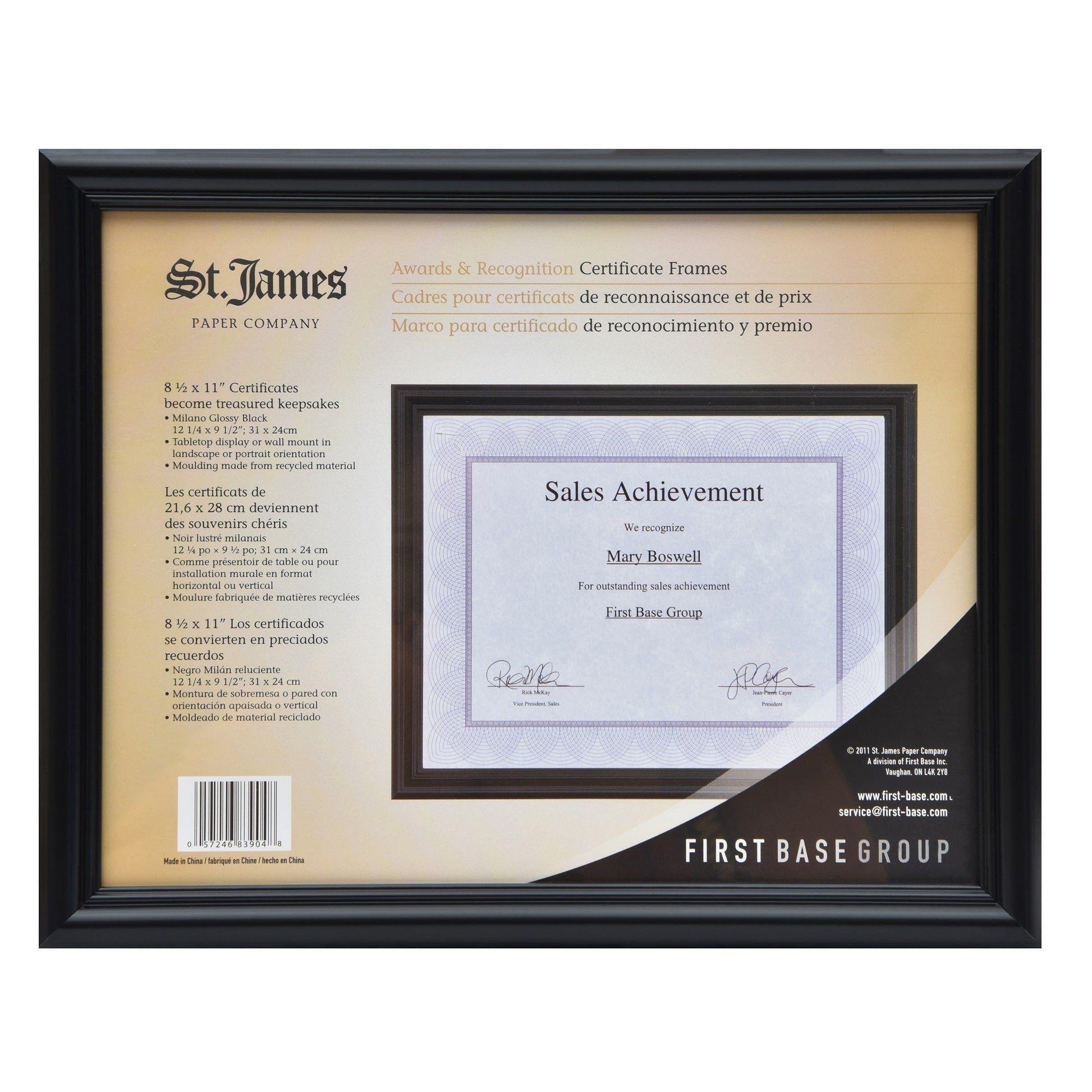 St. James® Certificate/Diploma/Document Frame, 8.5x11", Milano Glossy Black, 83904