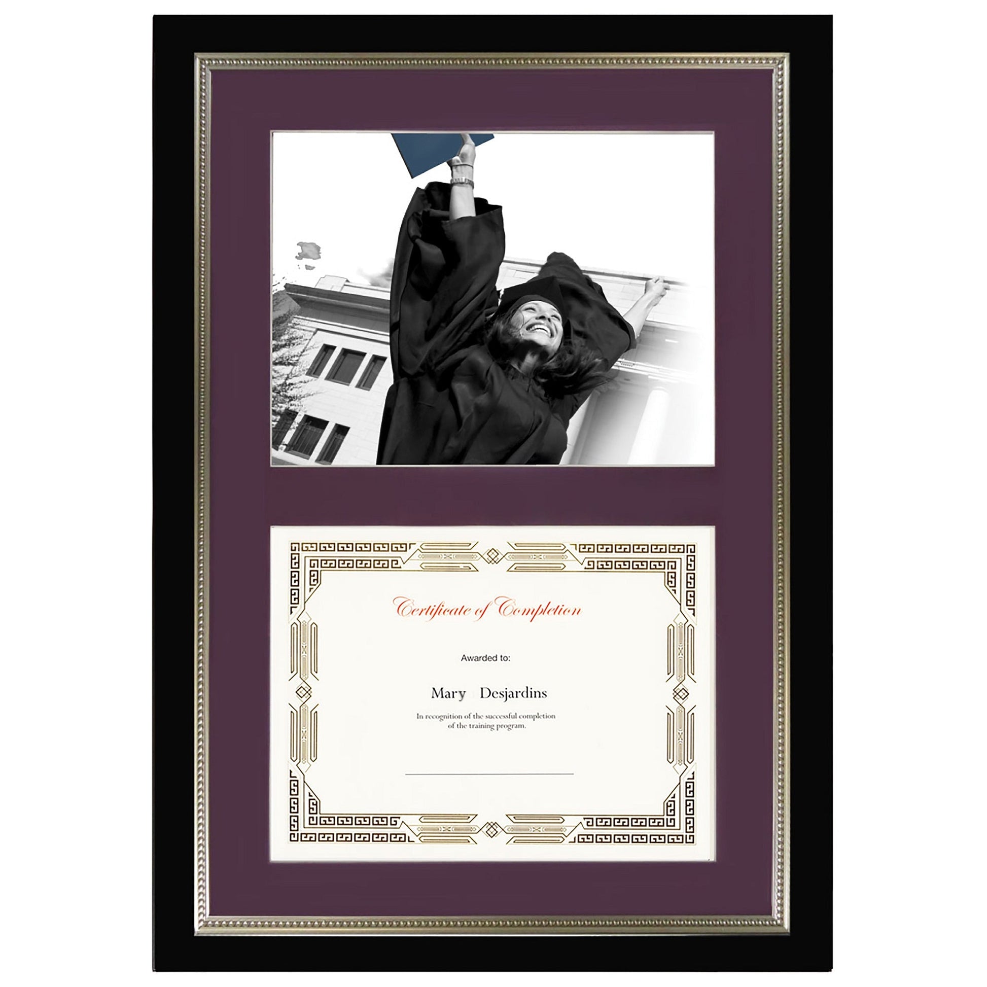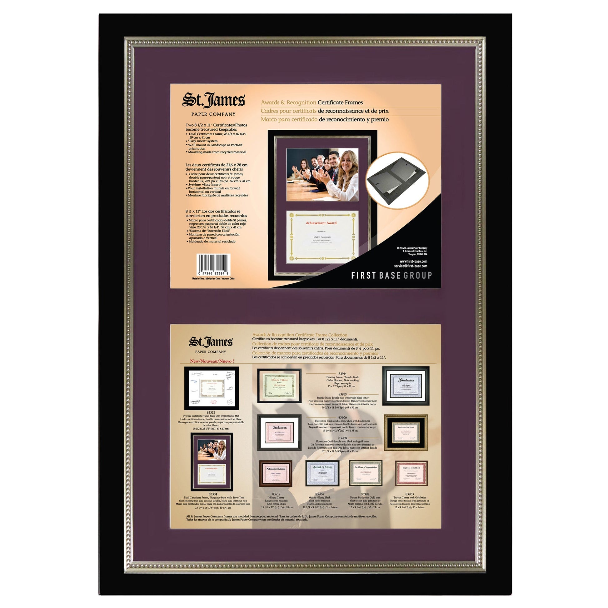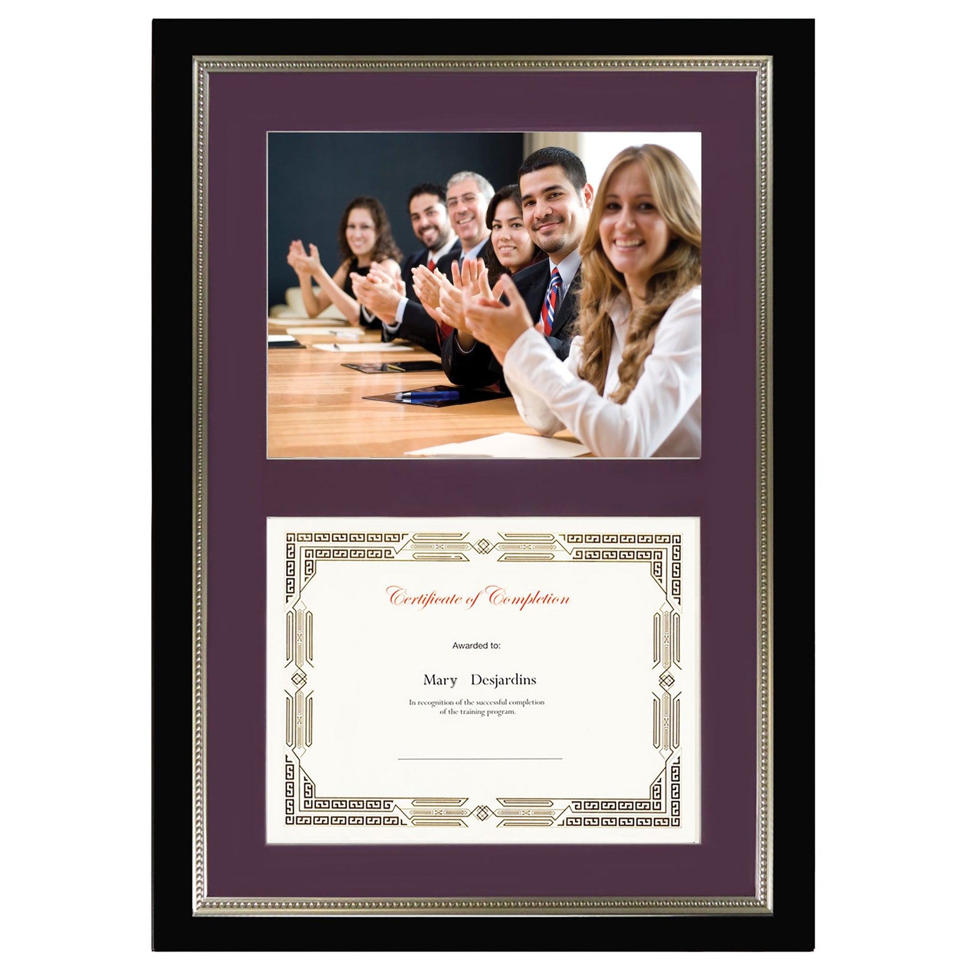 St. James® Dual Certificate Frame/Diploma Frame/Document Frame, Black w/ Burgundy Double Mat, 23¼ x 16¼" (59 x 41cm)