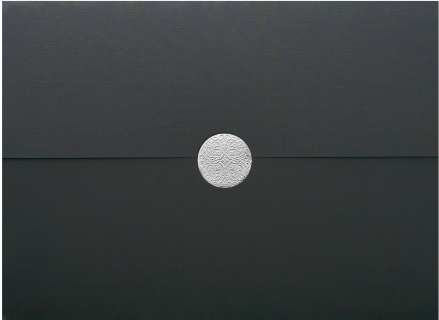 - A beautiful medallion closure is embossed and engraved with luxurious foil on a rich 80 lb. linen cover stock