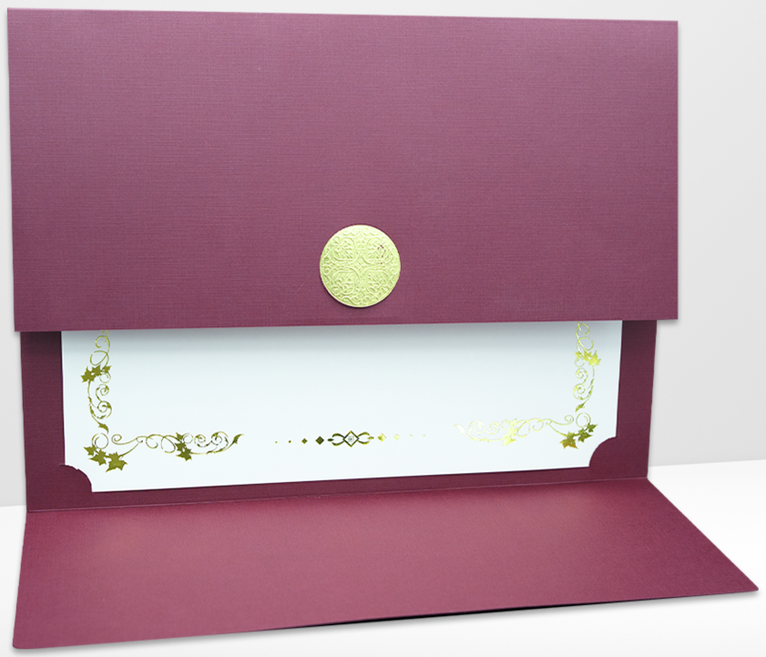 St. James® Elite™ Medallion Fold Certificate Holders, Burgundy Linen with Gold Medallion, Pack of 5, 83533