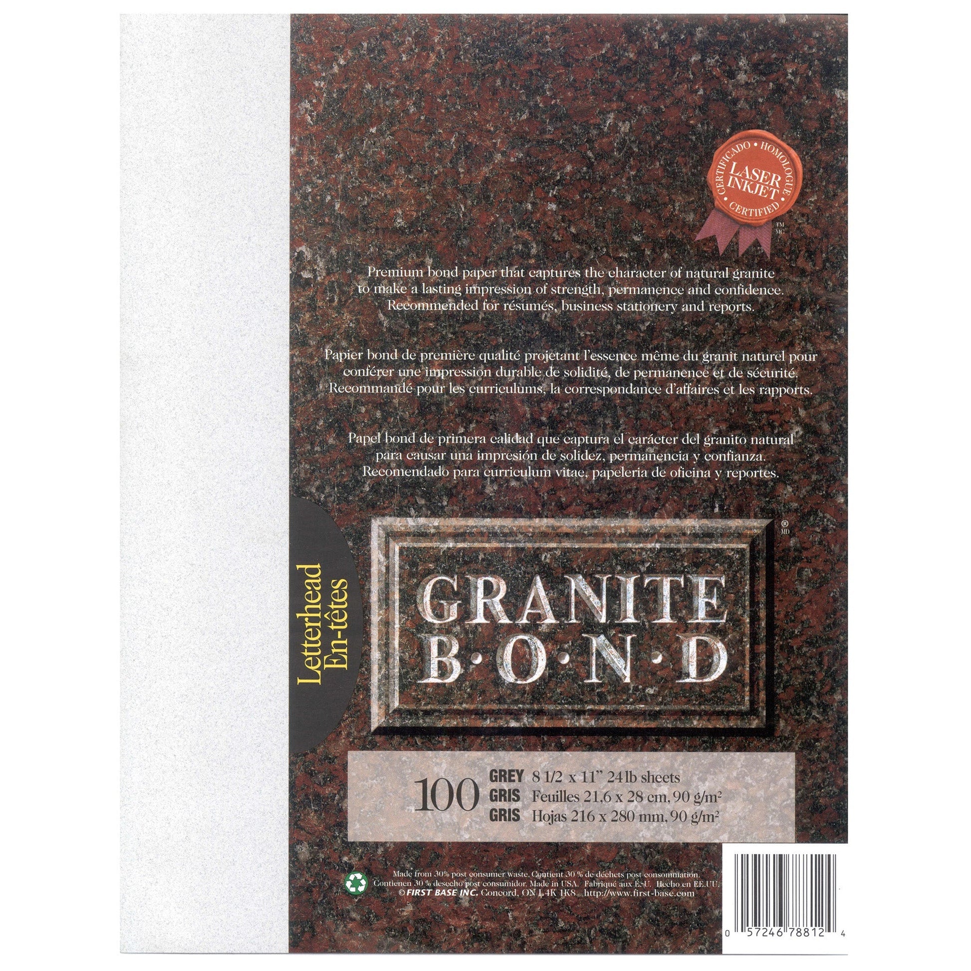 - Premium bond paper that captures the characteristics of natural granite to make a lasting impression of strength, permanence, and confidence
