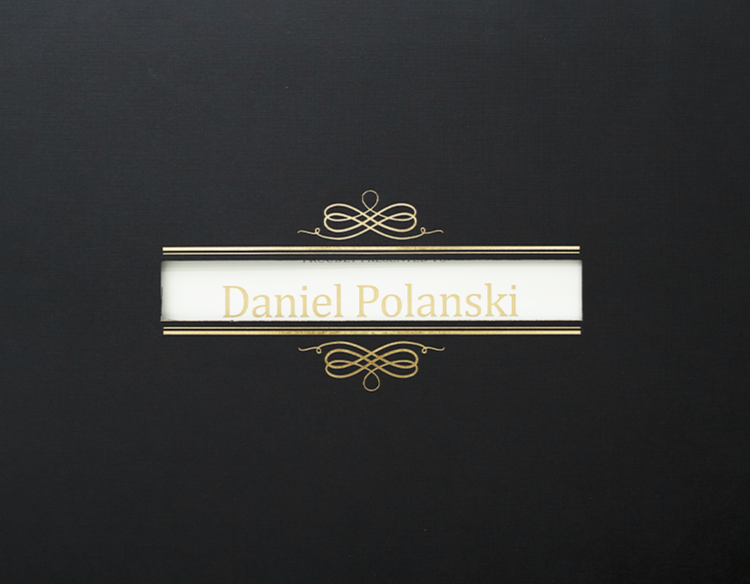 - The window is framed with beautiful engravings in gold foil on a rich 80 lb. black linen cover stock